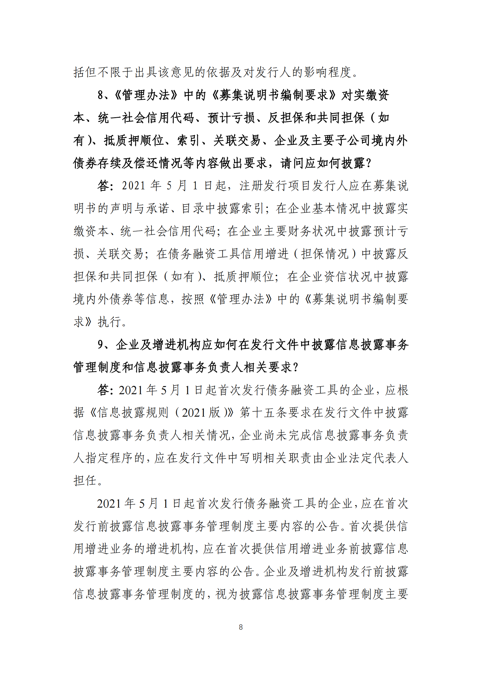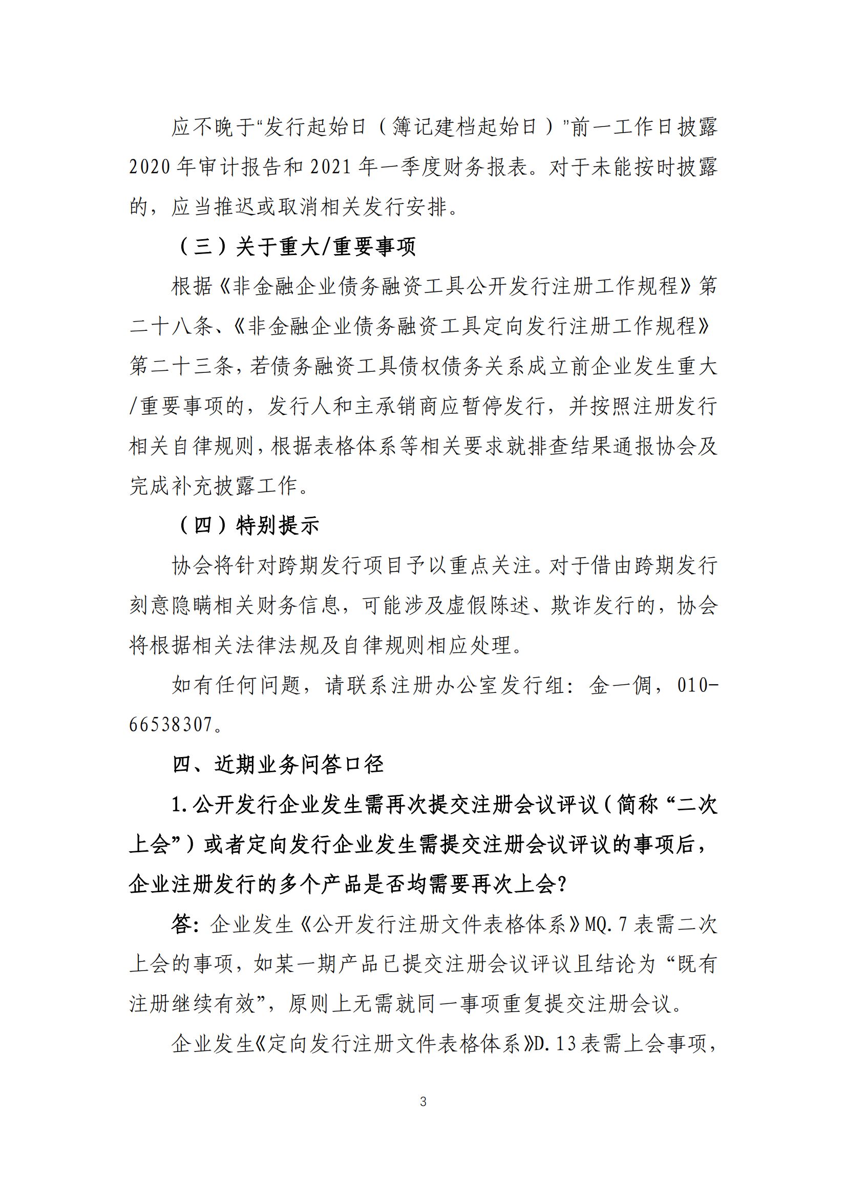 关于发布“4.30”期间债务融资工具注册发行工作 有关事项及近期业务问答口径的通知